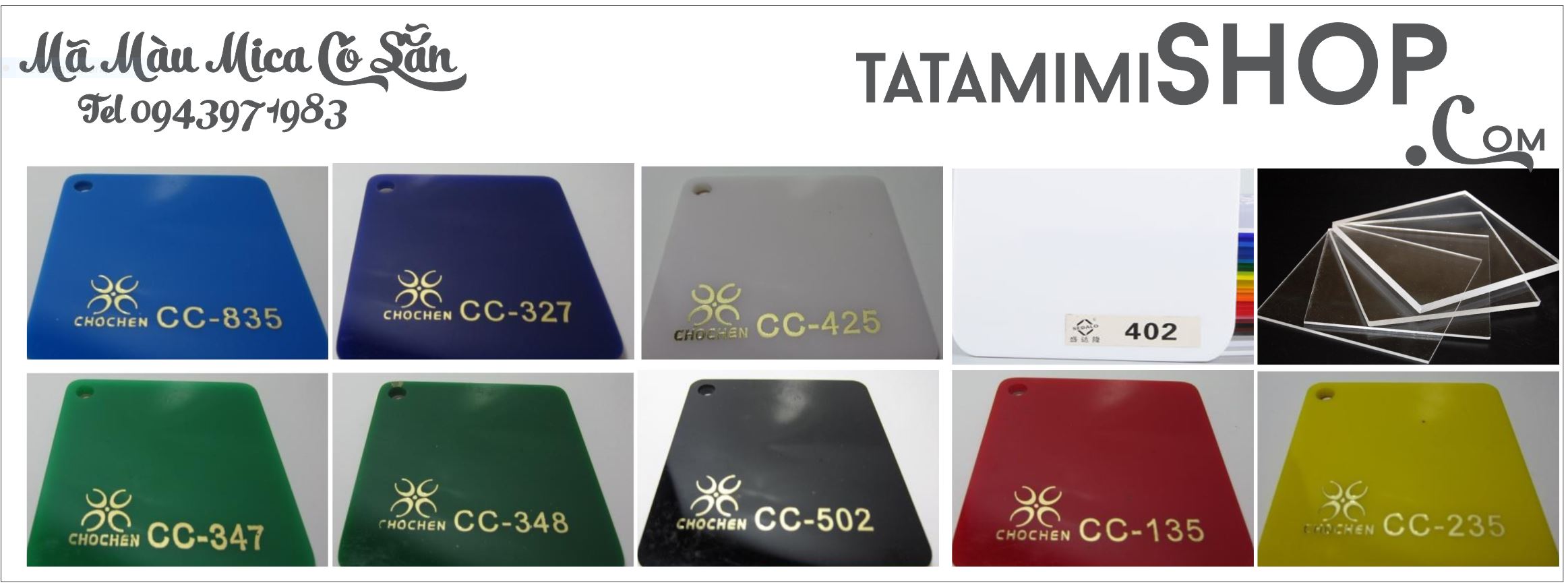 - Các mã màu sau đây có thể làm được Kệ mica xoay 3 mặt theo yêu cầu với đế là các màu sau